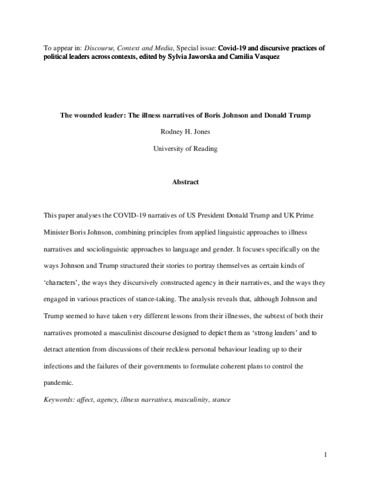 The wounded leader: the illness narratives of Boris Johnson and Donald Trump.