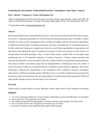 Evaluating the determinants of household electricity consumption using cluster analysis.
