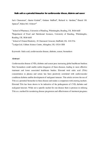 Sialic acid as a potential biomarker for cardiovascular disease, diabetes and cancer.