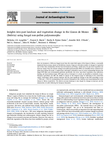 Loughlin, N. J. D., Mayle, F. E. orcid id iconORCID: https://orcid.org/0000-0001-9208-0519, Nunez Otano, N. B., O'Keefe, J. M. K., Duncan, N. A., Walker, J. H. and Whitney, B. S. (2021) Insights into past land-use and vegetation change in the Llanos de Moxos (Bolivia) using fungal non-pollen palynomorphs. Journal of Archaeological Science, 130. 105382. ISSN 0305-4403 doi: 10.1016/j.jas.2021.105382