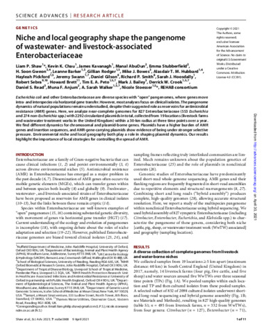 Niche and local geography shape the pangenome of wastewater- and livestock-associated Enterobacteriaceae.
