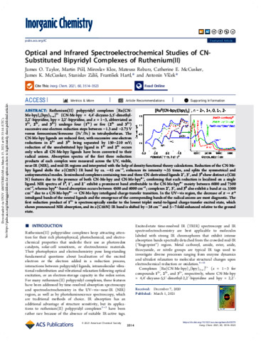 Optical and infrared spectroelectrochemical studies of CN-substituted bipyridyl complexes of Ruthenium(II).