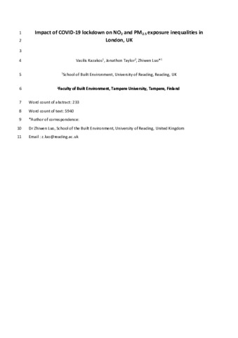 Impact of COVID-19 lockdown on NO2 and PM2.5 exposure inequalities in London, UK.