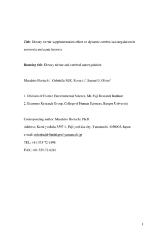Horiuchi, G., Rossetti, G. M. K. orcid id iconORCID: https://orcid.org/0000-0002-9610-6066 and Oliver, S. J. (2022) Dietary nitrate supplementation effect on dynamic cerebral autoregulation in normoxia and acute hypoxia. Journal of Cerebral Blood Flow & Metabolism, 42 (3). pp. 486-494. ISSN 1559-7016 doi: 10.1177/0271678X20910053
