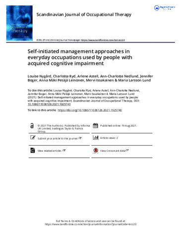 Self-initiated management approaches in everyday occupations used by people with acquired cognitive impairment.