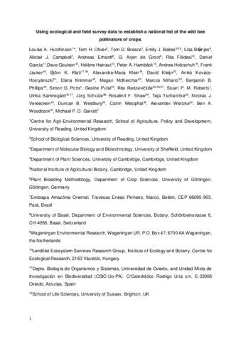 Using ecological and field survey data to establish a national list of the wild bee pollinators of crops.