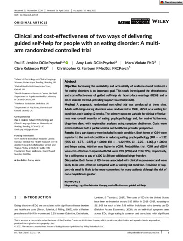 Clinical and cost-effectiveness of two ways of delivering guided self-help for people with an eating disorder: a multi-arm randomised controlled trial.