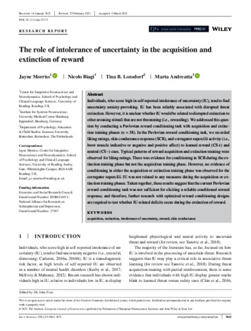 The role of intolerance of uncertainty in the acquisition and extinction of reward.