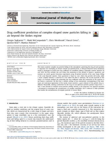 Tagliavini, G. orcid id iconORCID: https://orcid.org/0000-0003-2090-8190, McCorquodale, M. orcid id iconORCID: https://orcid.org/0000-0002-2996-663X, Westbrook, C. orcid id iconORCID: https://orcid.org/0000-0002-2889-8815, Corso, P. orcid id iconORCID: https://orcid.org/0000-0001-7875-1080, Krol, Q. and Holzner, M. (2021) Drag coefficient prediction of complex-shaped snow particles falling in air beyond the Stokes regime. International Journal of Multiphase Flow, 140. 103652. ISSN 03019322 doi: 10.1016/j.ijmultiphaseflow.2021.103652