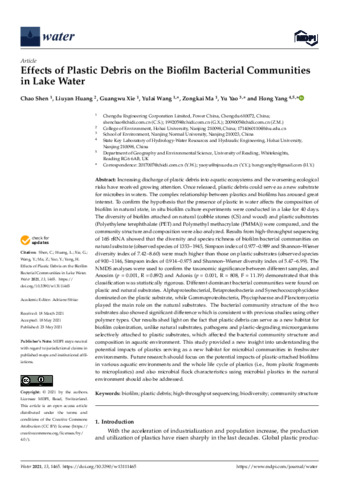 Effects of plastic debris on the biofilm bacterial communities in lake water.
