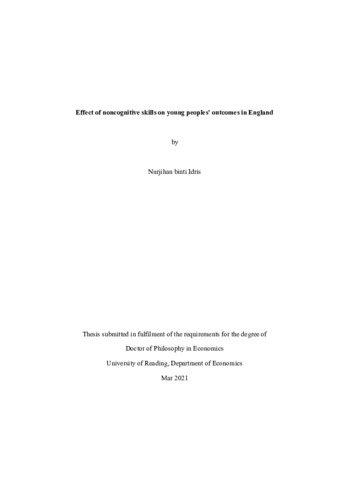 Idris, N. (2021) Effect of noncognitive skills on young peoples’ outcomes in England. PhD thesis, University of Reading. doi: 10.48683/1926.00098318