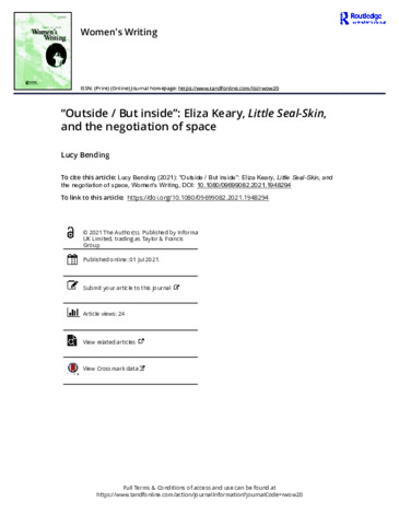 Bending, L. (2022) "Outside / But inside": Eliza Keary, Little Seal-Skin, and the negotiation of space. Women's Writing, 29 (3). pp. 346-362. ISSN 1747-5848 doi: 10.1080/09699082.2021.1948294