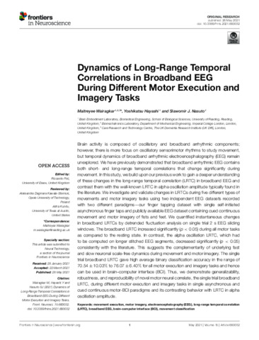 Dynamics of long-range temporal correlations in broadband EEG during different motor execution and imagery tasks.