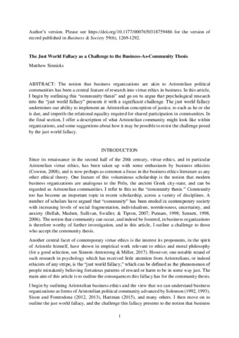 Sinnicks, M. (2020) The just world fallacy as a challenge to the business-as-community thesis. Business & Society, 59 (6). pp. 1269-1292. ISSN 0007-6503 doi: 10.1177/0007650318759486