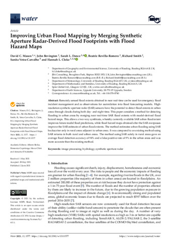 Improving urban flood mapping by merging Synthetic Aperture Radar-derived flood footprints with flood hazard maps.