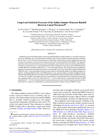 Long-lead statistical forecasts of the Indian summer monsoon rainfall based on causal precursors.