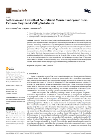 Adhesion and growth of neuralized mouse embryonic stem cells on parylene-C/SiO2 substrates.