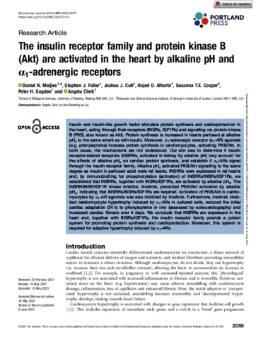 Meijles, D. N., Fuller, S. J., Cull, J. J., Alharbi, H. O., Cooper, S. T. E., Sugden, P. H. and Clerk, A. orcid id iconORCID: https://orcid.org/0000-0002-5658-0708 (2021) The insulin receptor family and protein kinase B (Akt) are activated in the heart by alkaline pH and α1-adrenergic receptors. Biochemical Journal, 478 (11). pp. 2059-2079. ISSN 1470-8728 doi: 10.1042/BCJ20210144