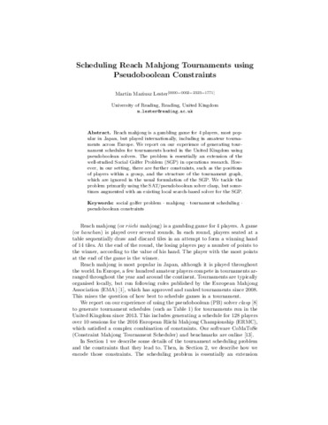Scheduling reach mahjong tournaments using pseudoboolean constraints.