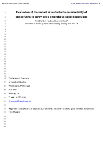 Evaluation of the impact of surfactants on miscibility of griseofulvin in spray dried amorphous solid dispersions.