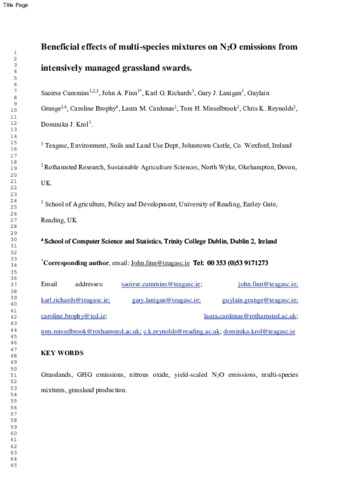 Cummins, S., Finn, J. A., Richards, K. G., Lanigan, G. J., Grange, G., Brophy, C., Cardenas, L. M., Misselbrook, T. H., Reynolds, C. K. orcid id iconORCID: https://orcid.org/0000-0002-4152-1190 and Krol, D. J. (2021) Beneficial effects of multi-species mixtures on N2O emissions from intensively managed grassland swards. Science of the Total Environment, 792. 148163. ISSN 0048-9697 doi: 10.1016/j.scitotenv.2021.148163