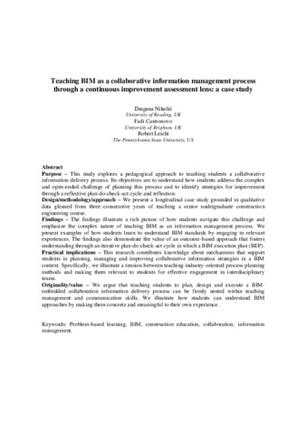 Teaching BIM as a collaborative information management process through a continuous improvement assessment lens: a case study.