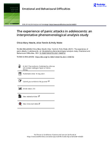 The experience of panic attacks in adolescents: an interpretative phenomenological analysis study.