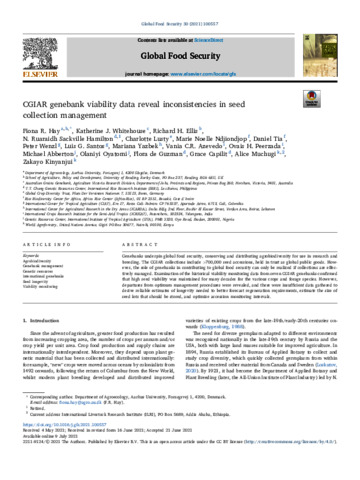 Uncontrolled Keywords agrobiodiversity; genebank management; genetic resources; international genebanks; seed longevity; viability monitoring