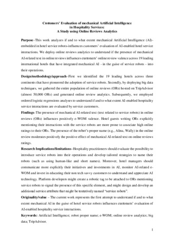 Customers’ evaluation of mechanical artificial intelligence in hospitality services: a study using online reviews analytics.