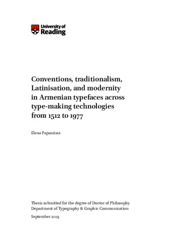 Papassissa, E. (2020) Conventions, traditionalism, Latinisation, and modernity in Armenian typefaces across type-making technologies from 1512 to 1977. PhD thesis, University of Reading. doi: 10.48683/1926.00099061