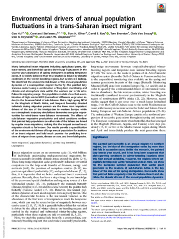 Environmental drivers of annual population fluctuations in a trans-Saharan insect migrant.
