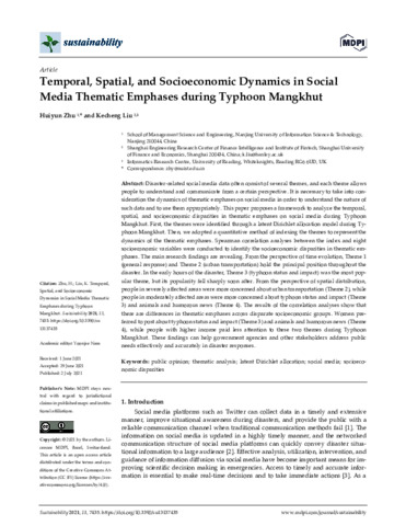 Temporal, spatial, and socioeconomic dynamics in social media thematic emphases during Typhoon Mangkhut.