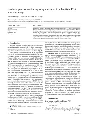 Nonlinear process monitoring using a mixture of probabilistic PCA with clusterings.