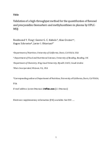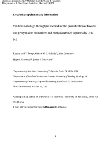 Validation of a high-throughput method for the quantification of flavanol and procyanidin biomarkers and methylxanthines in plasma by UPLC-MS.
