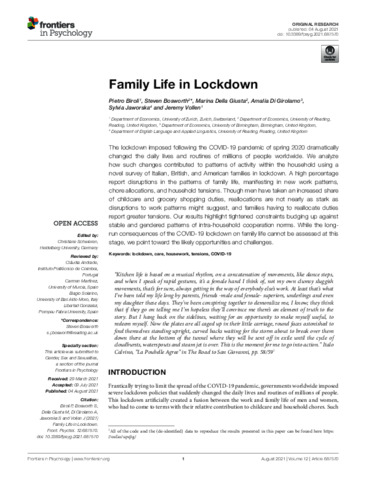 The lockdown imposed following the COVID-19 pandemic of spring 2020 dramatically changed the daily lives and routines of millions of people worldwide. We analyse how such changes contributed to patterns of activity within the household using a novel survey of Italian, British, and American families in lockdown. A high percentage report disruptions in the patterns of family life, manifesting in new work patterns, chore allocations, and household tensions. Though men have taken an increased share of childcare and grocery shopping duties, reallocations are not nearly as stark as disruptions to work patterns might suggest, and families having to reallocate duties report greater tensions. Our results highlight tightened constraints budging up against stable and gendered patterns of intra-household cooperation norms. While the long-run consequences of the COVID-19 lockdown on family life cannot be assessed at this stage, we point towards the likely opportunities and challenges.
