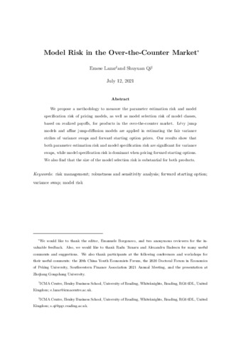Model risk in the over-the-counter market.