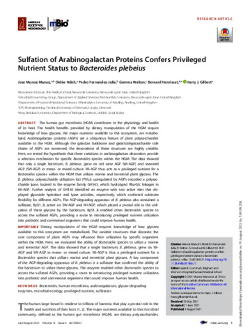 Sulfation of arabinogalactan proteins confers privileged nutrient status to Bacteroides plebeius.