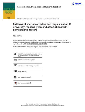 Patterns of special consideration requests at a UK university: reasons given and associations with demographic factors.