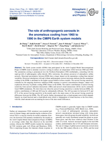 The role of anthropogenic aerosols in the anomalous cooling from 1960 to 1990 in the CMIP6 Earth System Models.