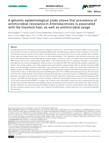 A genomic epidemiological study shows prevalence of antimicrobial resistance in Enterobacterales is associated with the livestock host, as well as antimicrobial usage.