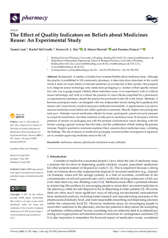 The effect of quality indicators on beliefs about medicines reuse: an experimental study.