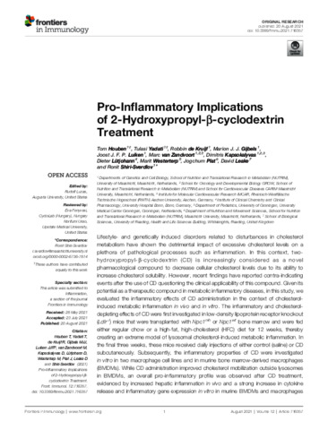 Houben, T., Yadati, T., De Kruijf, R., Gijbels, M. J., Luiken, J., Van Zandvoort, M., Kapsokalyvas, D., Lütjohann, D., Westerterp, M., Plat, J., Leake, D. orcid id iconORCID: https://orcid.org/0000-0002-1742-6134 and Shiri-Sverdlov, R. (2021) Pro-inflammatory implications of 2-hydroxypropyl-β-cyclodextrin treatment. Frontiers in Immunology, 12. 716357. ISSN 1664-3224 doi: 10.3389/fimmu.2021.716357