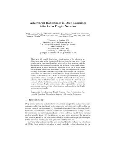Adversarial robustness in deep learning: attacks on fragile neurons.