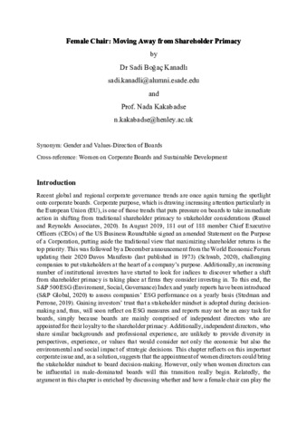 Female chair: moving away from shareholder primacy.
