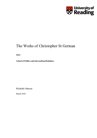 Johnson, M. (2021) The works of Christopher St German. PhD thesis, University of Reading. doi: 10.48683/1926.00099498