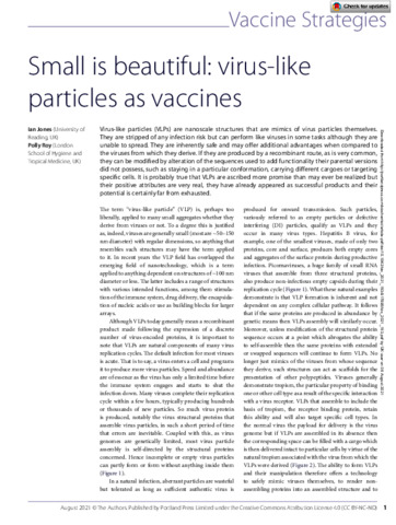 Jones, I. orcid id iconORCID: https://orcid.org/0000-0002-7738-2516 and Roy, P. orcid id iconORCID: https://orcid.org/0000-0001-6535-6911 (2021) Small is beautiful: virus-like particles as vaccines. The Biochemist, 43 (4). pp. 18-21. ISSN 0954-982X doi: 10.1042/bio_2021_153