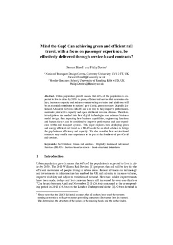 Mind the Gap! Can achieving green and efficient rail travel, with a focus on passenger experience, be effectively delivered through service-based contracts?