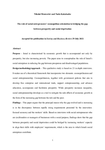 The role of social entrepreneurs' cosmopolitan orientation in bridging the gap between prosperity and social deprivation.