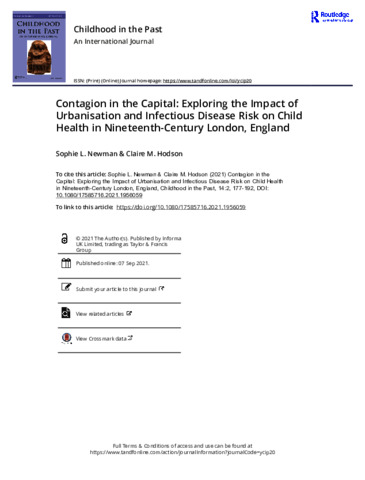 Nineteenth-century London was notorious for overcrowding, poor housing, and heavy air pollution. With a large proportion of its population living in conditions of poverty, diseases flourished as people were increasingly drawn to the industrialising centres of England in search of employment opportunities. Utilising historical documentary and skeletal evidence, this paper explores the impact of increasing urbanisation on non-adult (those aged 0–17 years) health, particularly in relation to exposure to a multitude of infectious diseases in circulation during this time. Focusing on the community of St Bride’s Church, London, it highlights the greater susceptibility of infants and children to risk of severe morbidity and mortality from infectious diseases, particularly amongst the lower classes. When considered against the socio-political, cultural and economic milieu of nineteenth-century London, this reveals how the multi-faceted process of urbanisation exacerbated ill-health, increased susceptibility to deadly infectious pathogens, and ultimately further marginalised its poorest inhabitants.