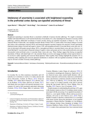 Morriss, J., Bell, T., Biagi, N. ORCID: https://orcid.org/0000-0002-7119-0767, Johnstone, T. and Van Reekum, C. M.
